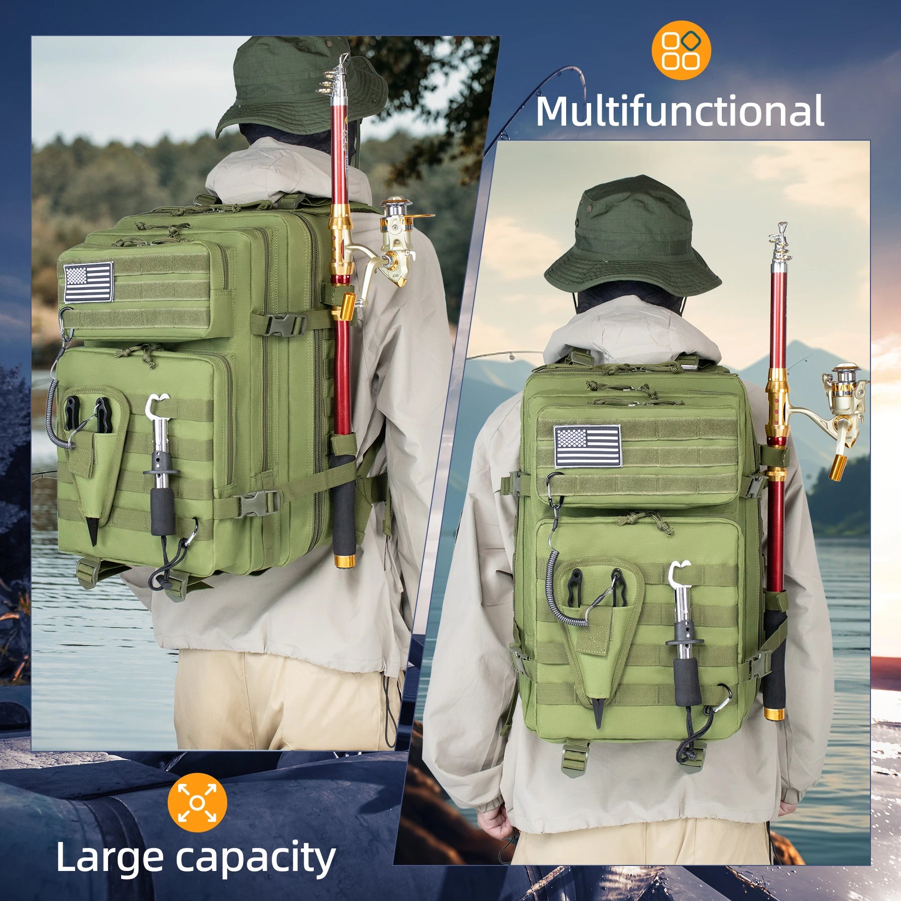 45L Fishing Hunting Bag Tactical Backpack Men's