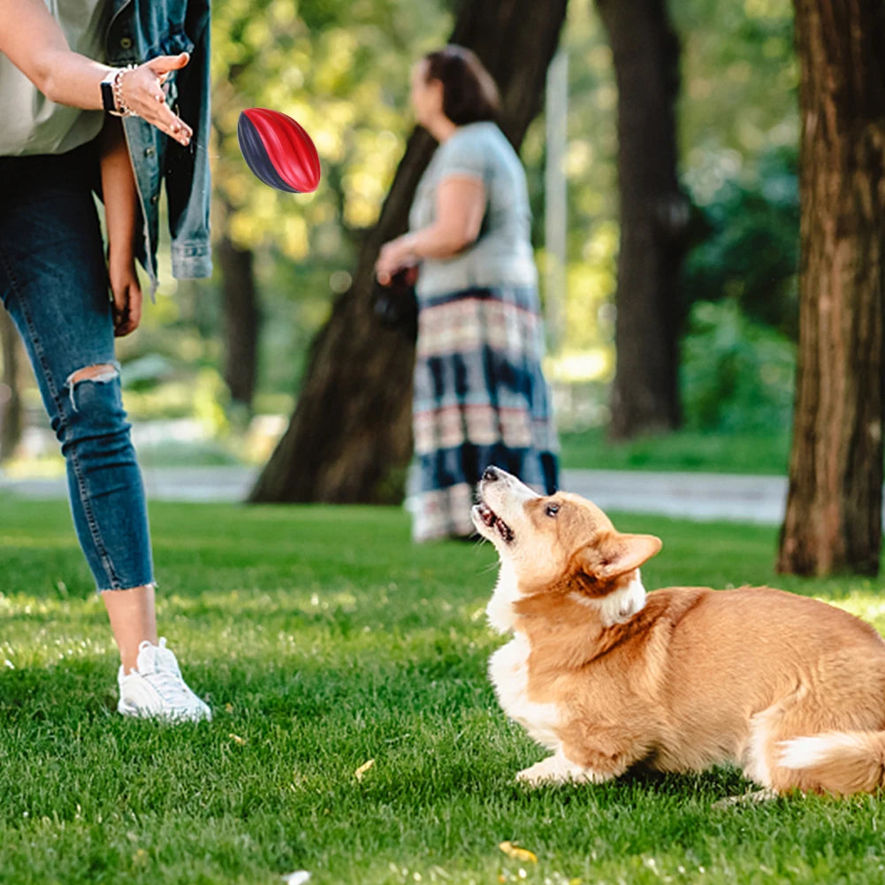 3. Spiraled Design: Our solid rugby toy features a spiral pattern that not only increases stability but also makes it easier to grip when throwing and catching. This design enhances gameplay and skill development.